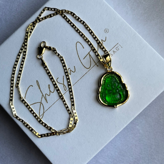 18K Gold Filled Green Happy Buddha Necklace