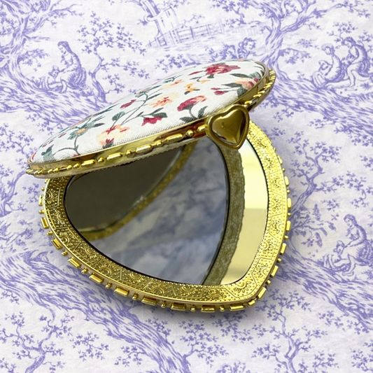 White Heart Shaped Floral Print Compact Mirror
