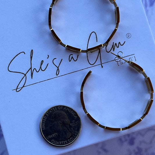 18K Gold Plated Stainless Steel Muse Textured Hoop Earrings
