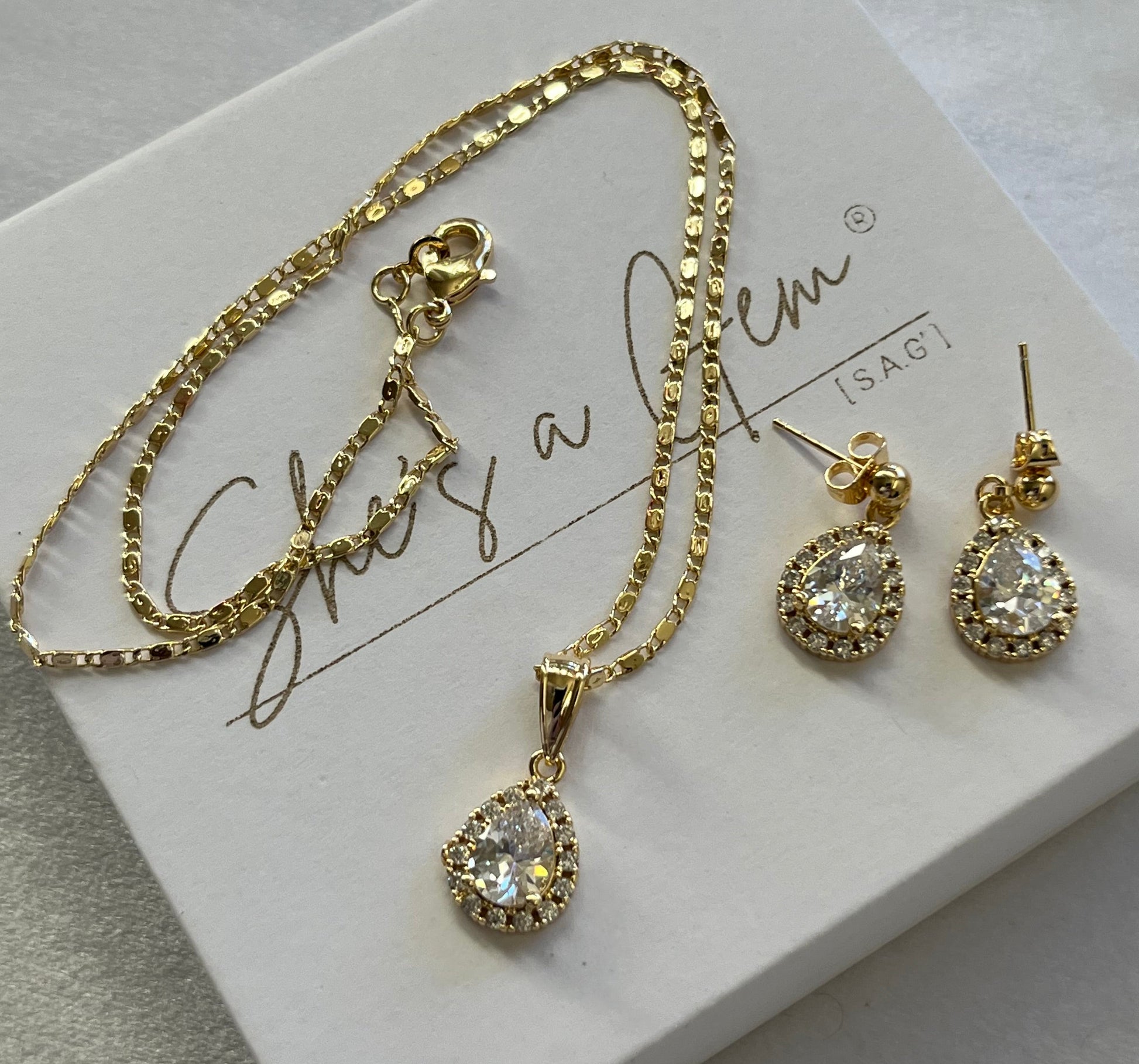 18K Gold Filled Pear Zirconia Necklace & Earring Set