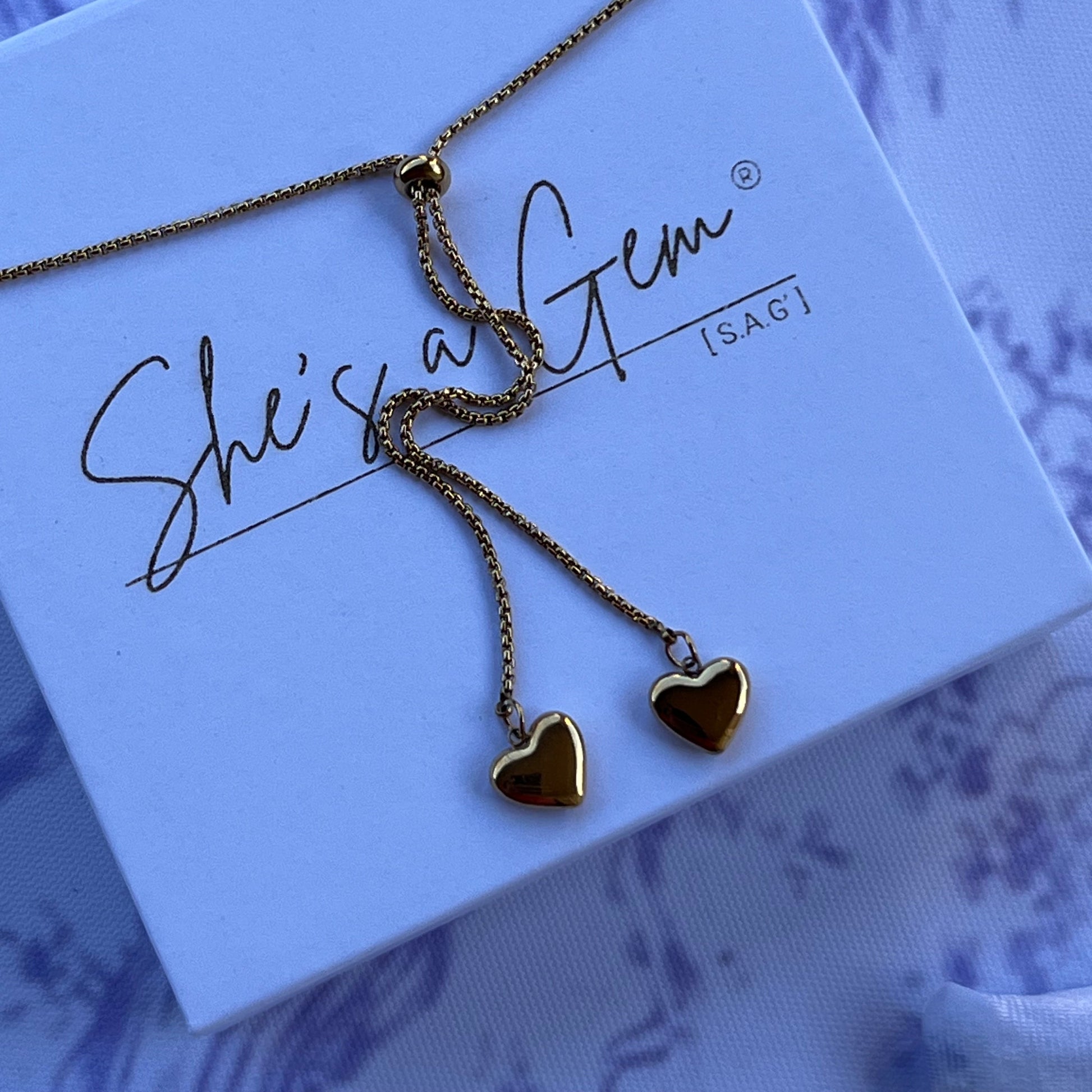 18K Gold Plated Stainless Steel Two Hearts Adjustable Necklace