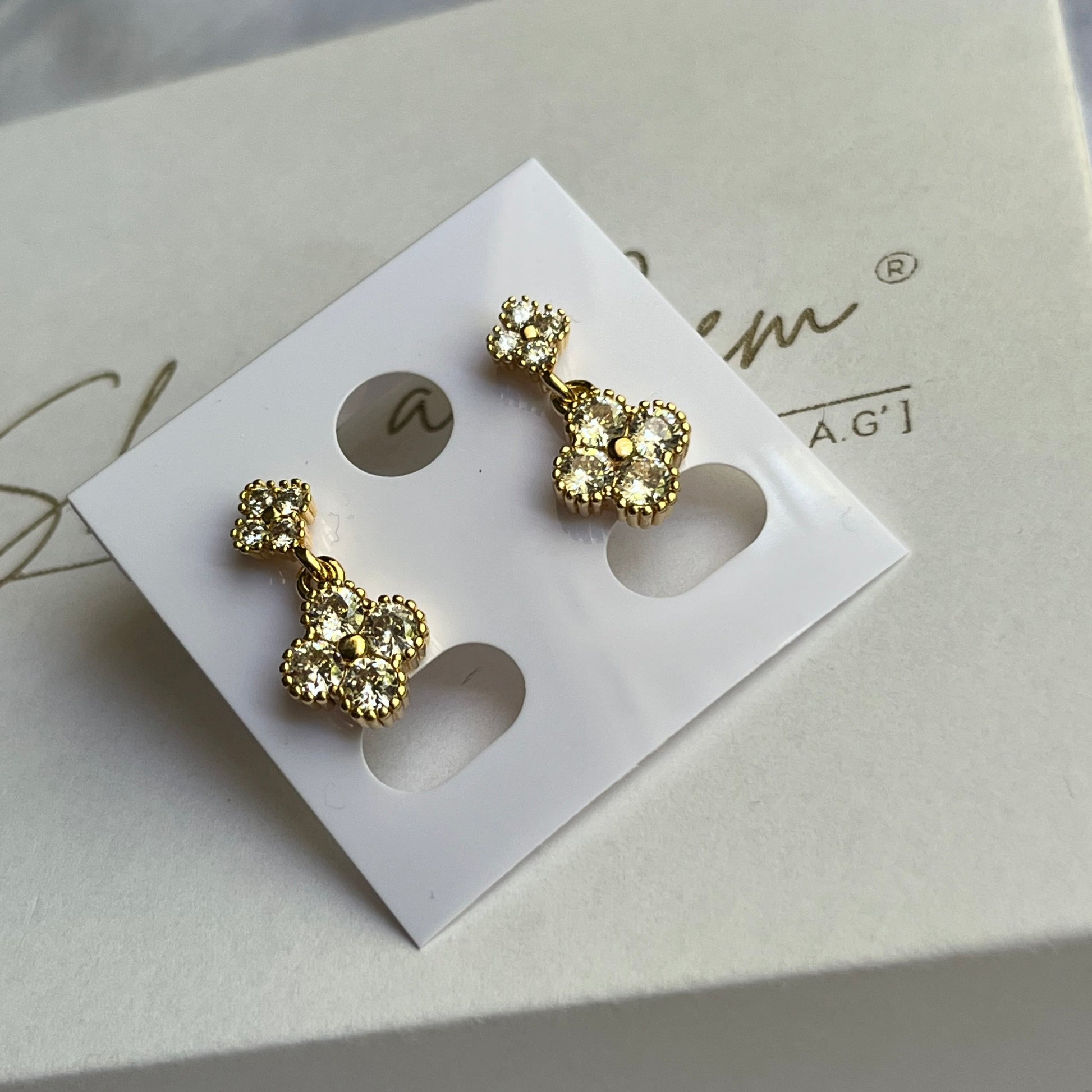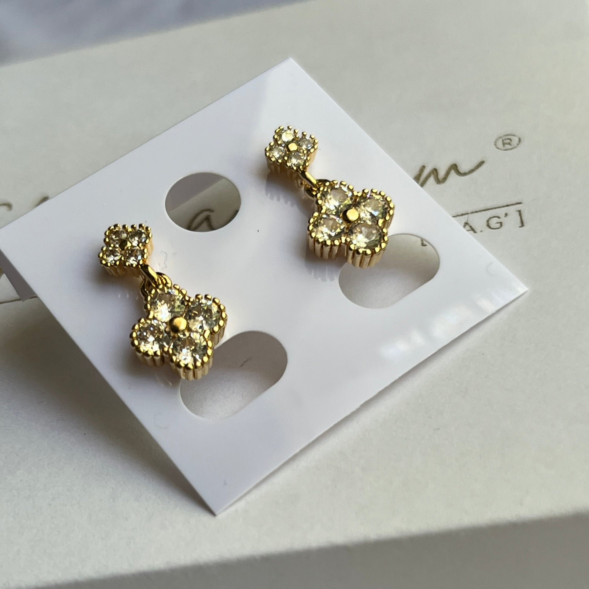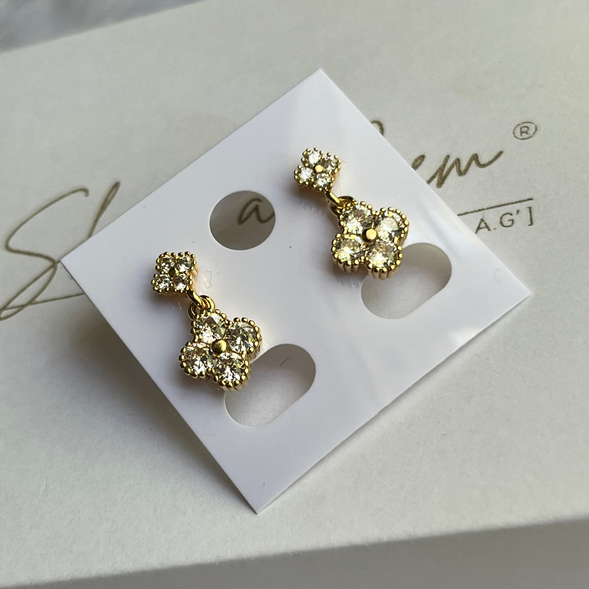 Gold Filled Oro Laminado Crystal Clover Stud Dangle Earrings