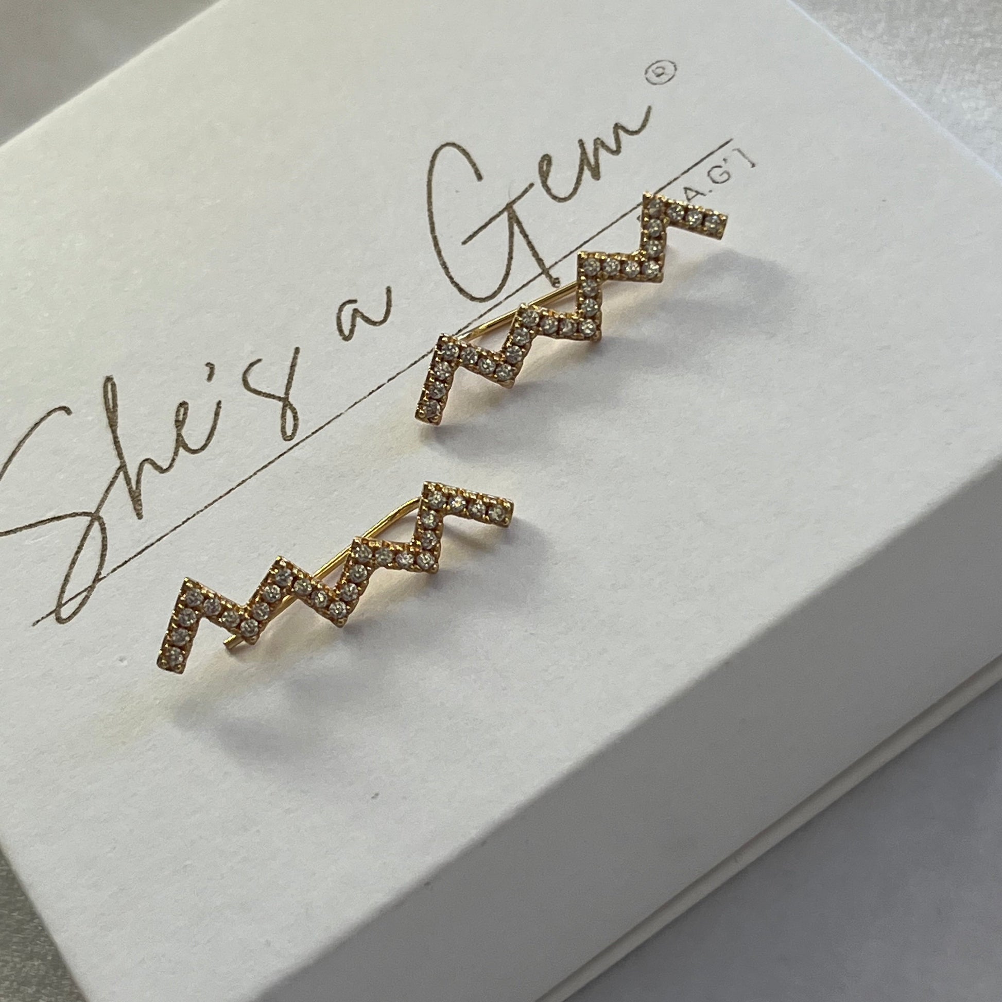 18k Gold Filled Thunderbolt Ear Climber Earrings