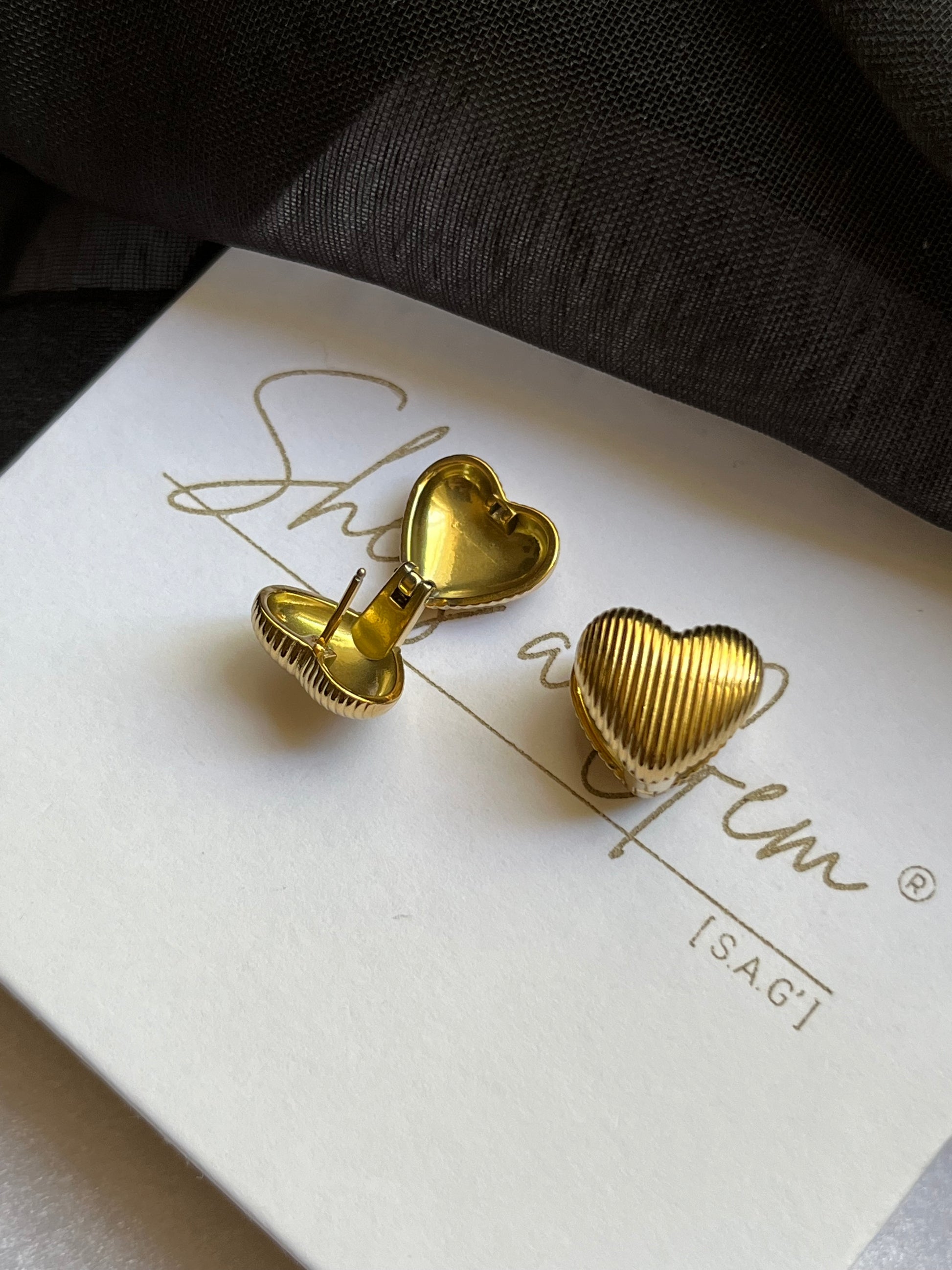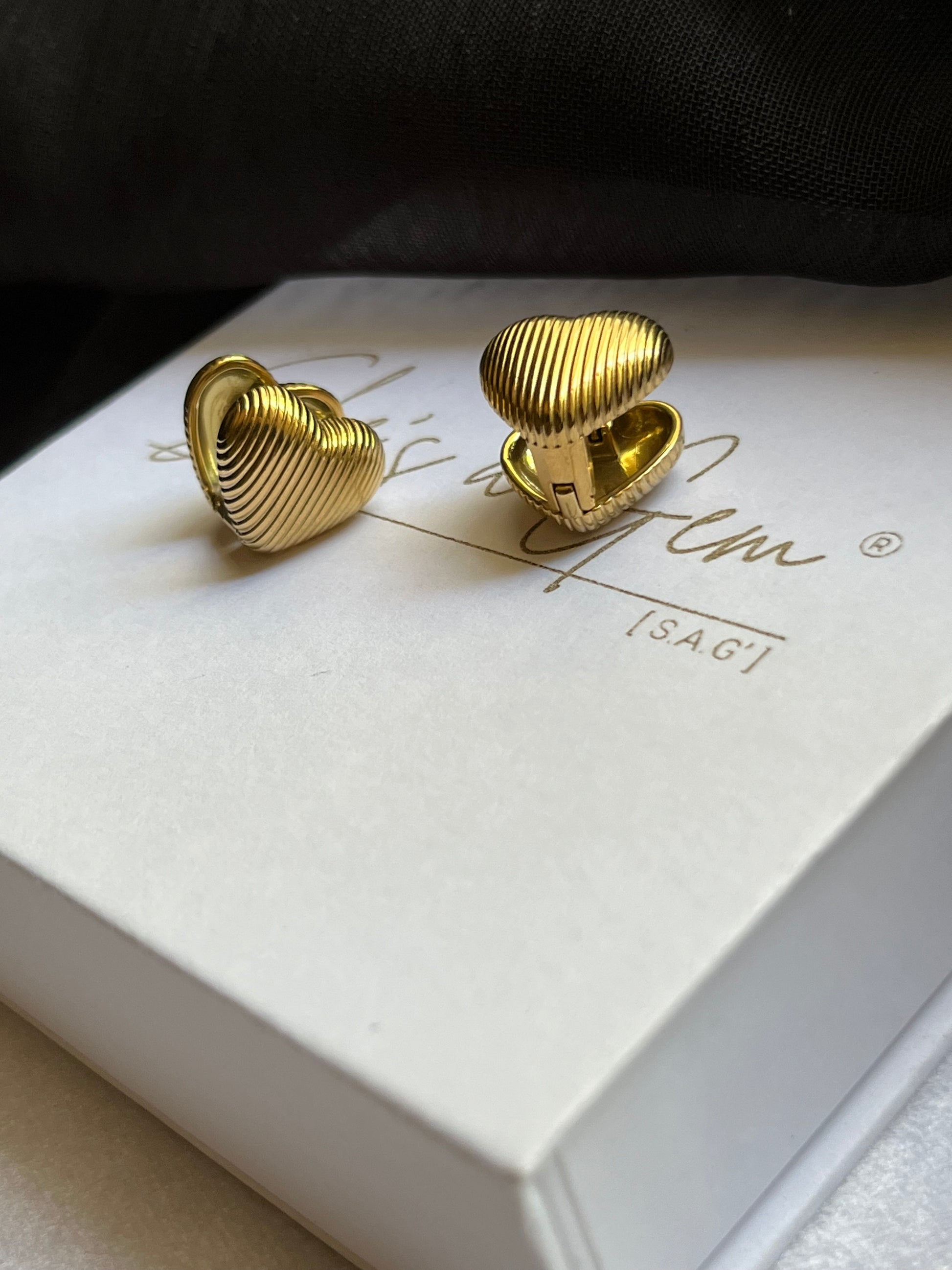 Romanic and refined, our Golden Heart Earrings embody the charm of classic jewelry. The ridged texture catches the light beautifully, while the polished gold finish adds an air of timeless luxury.
