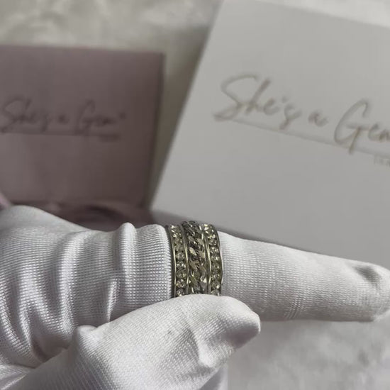 Embrace timeless elegance with this stainless steel eternity spinner ring, where perpetual motion meets refined design. The smooth-spinning band offers a meditative quality, perfect for moments requiring calm focus or quiet reflection. Crafted from durable stainless steel, this versatile piece resists tarnishing and everyday wear, making it an enduring addition to any jewelry collection. Whether worn as a statement ring or a personal talisman, its minimalist aesthetic complements both contemporary and classic styles with understated sophistication.